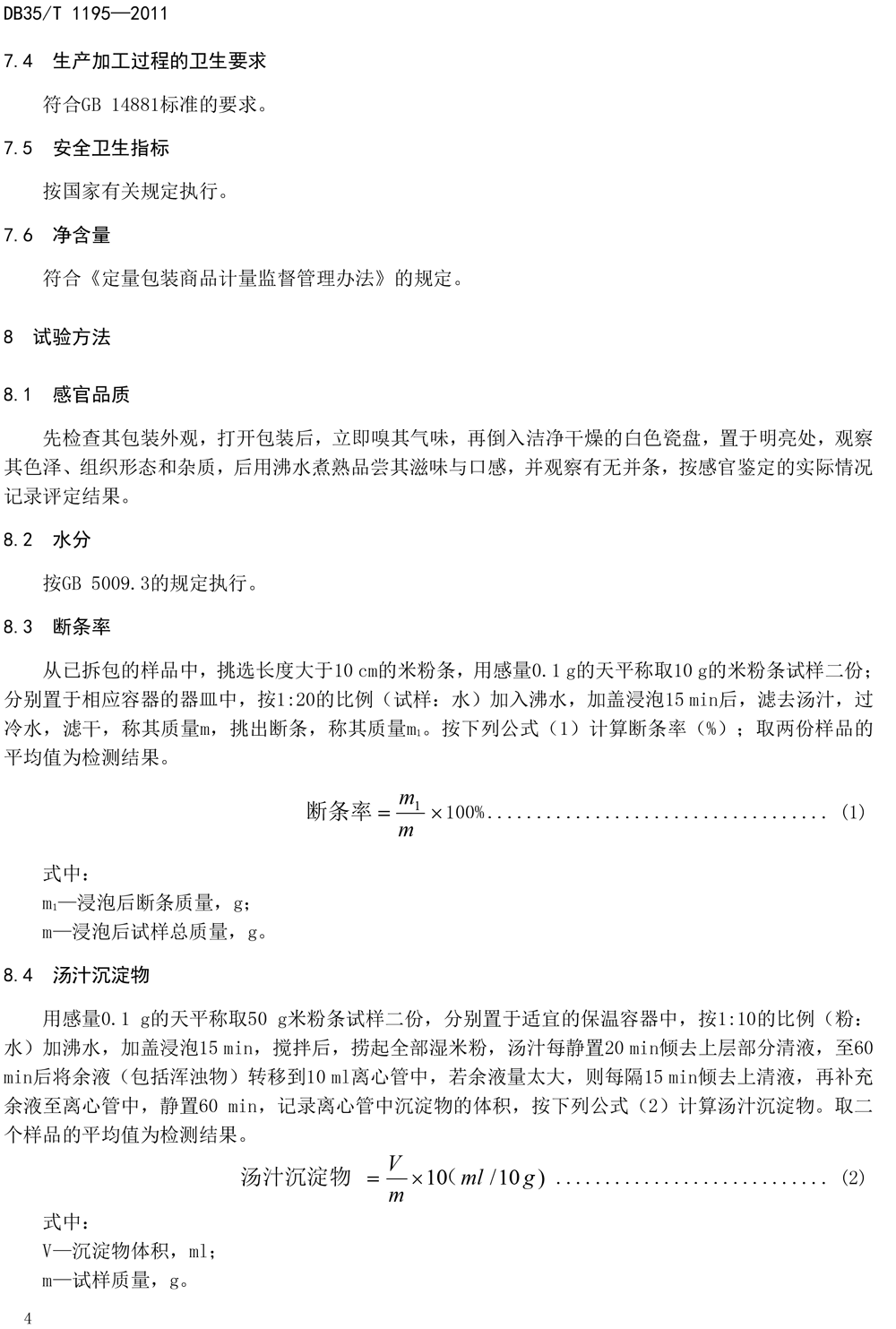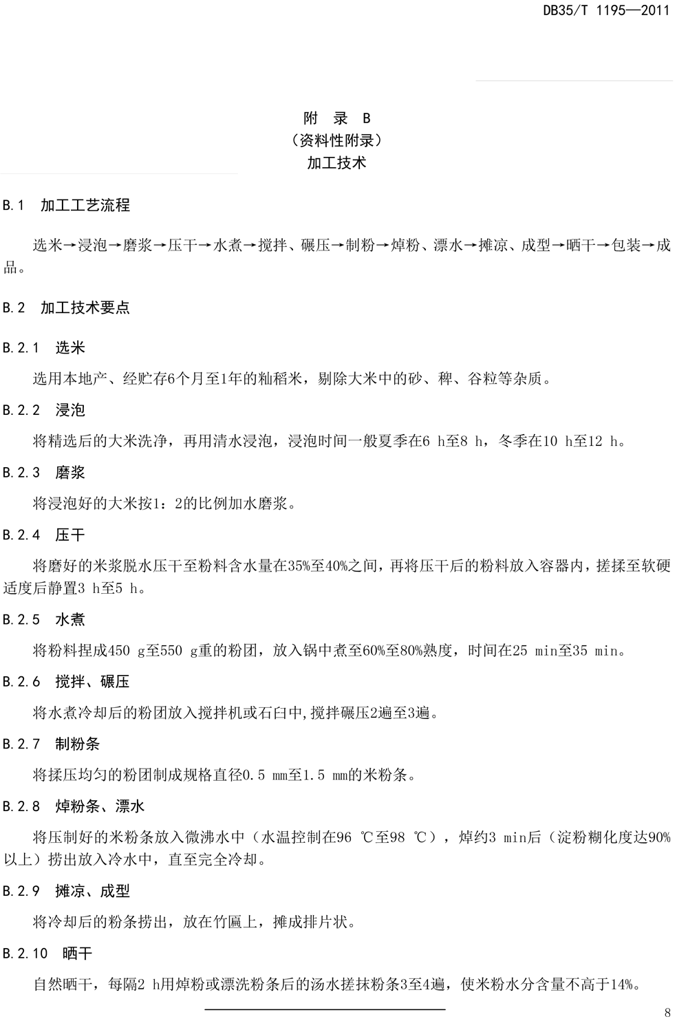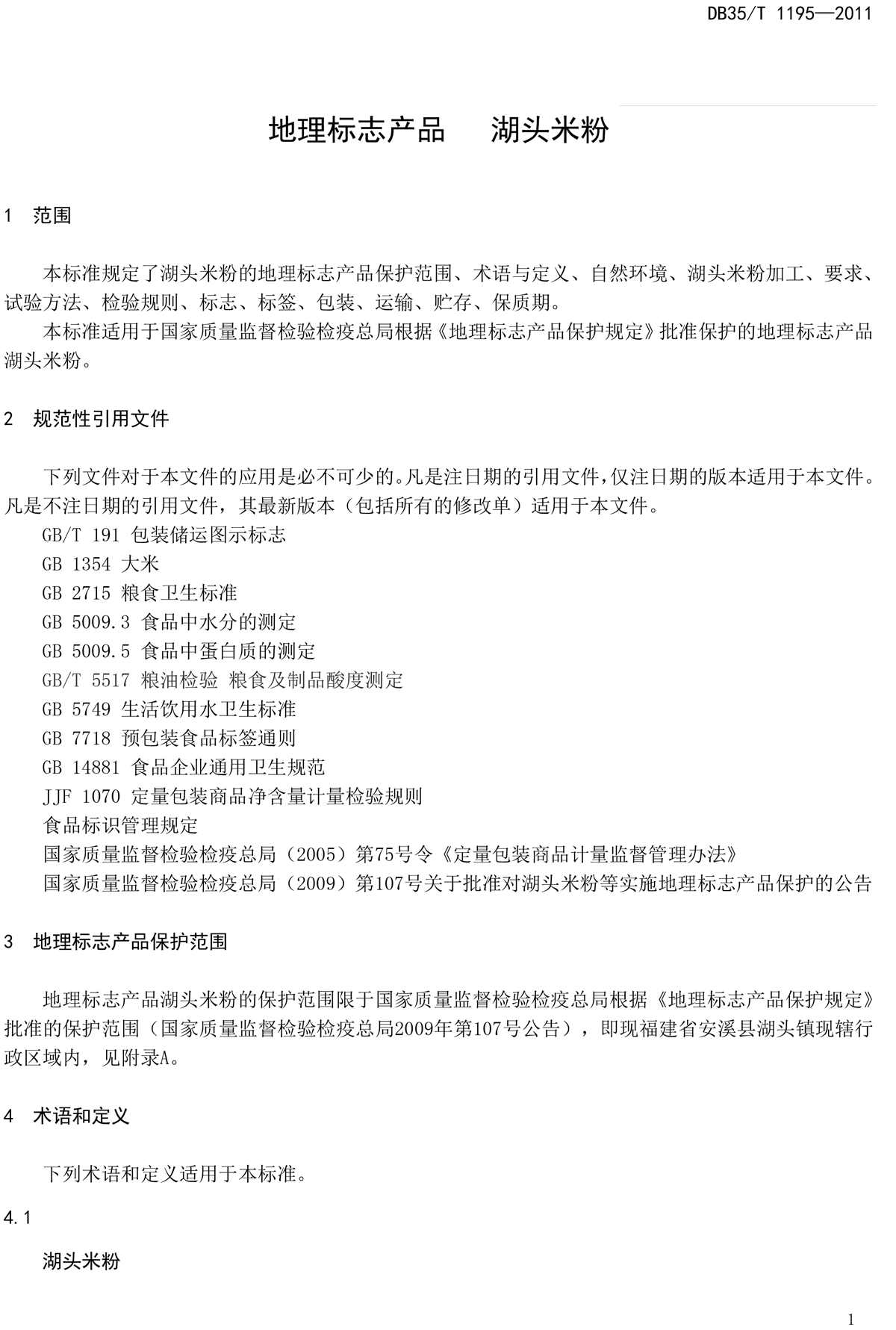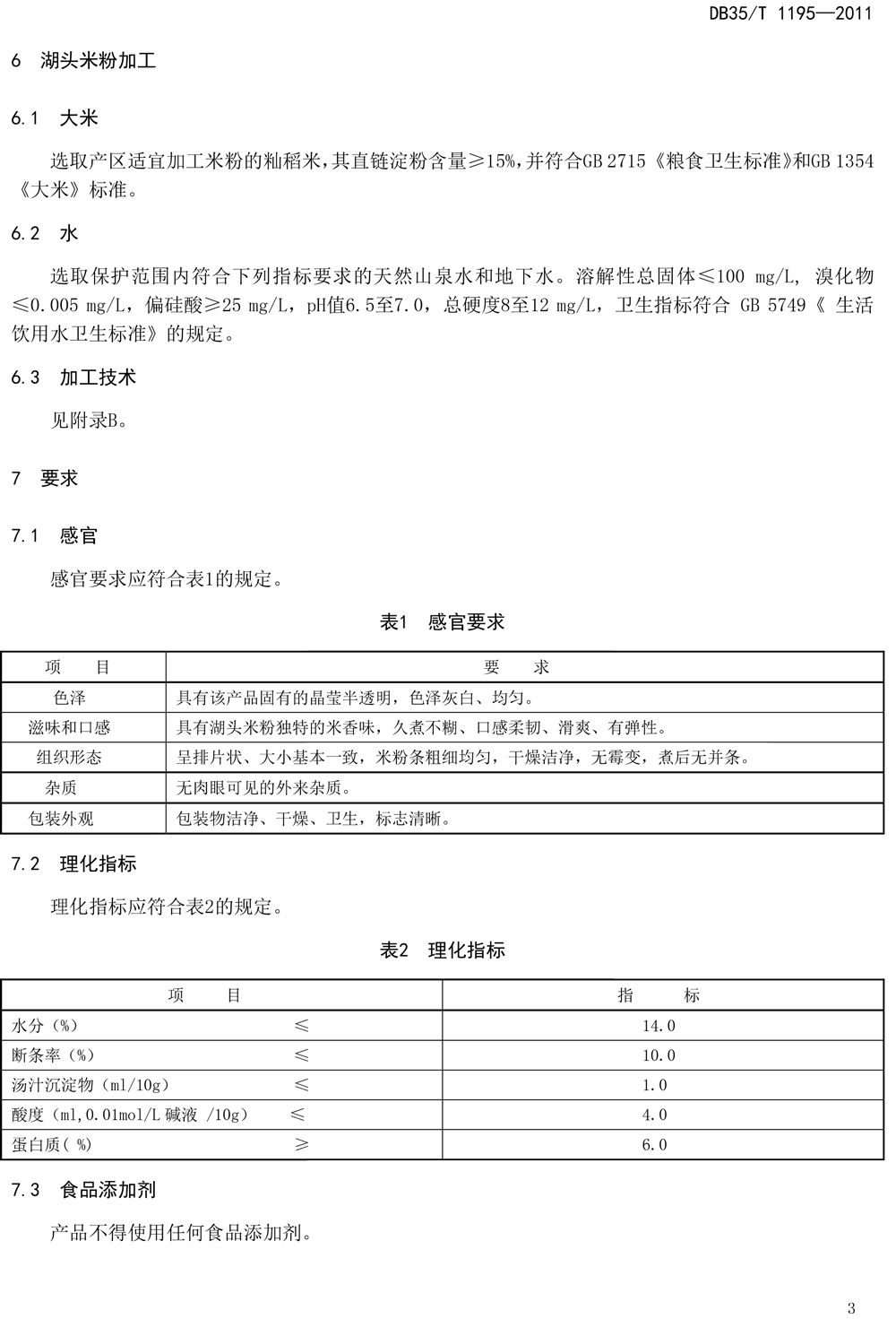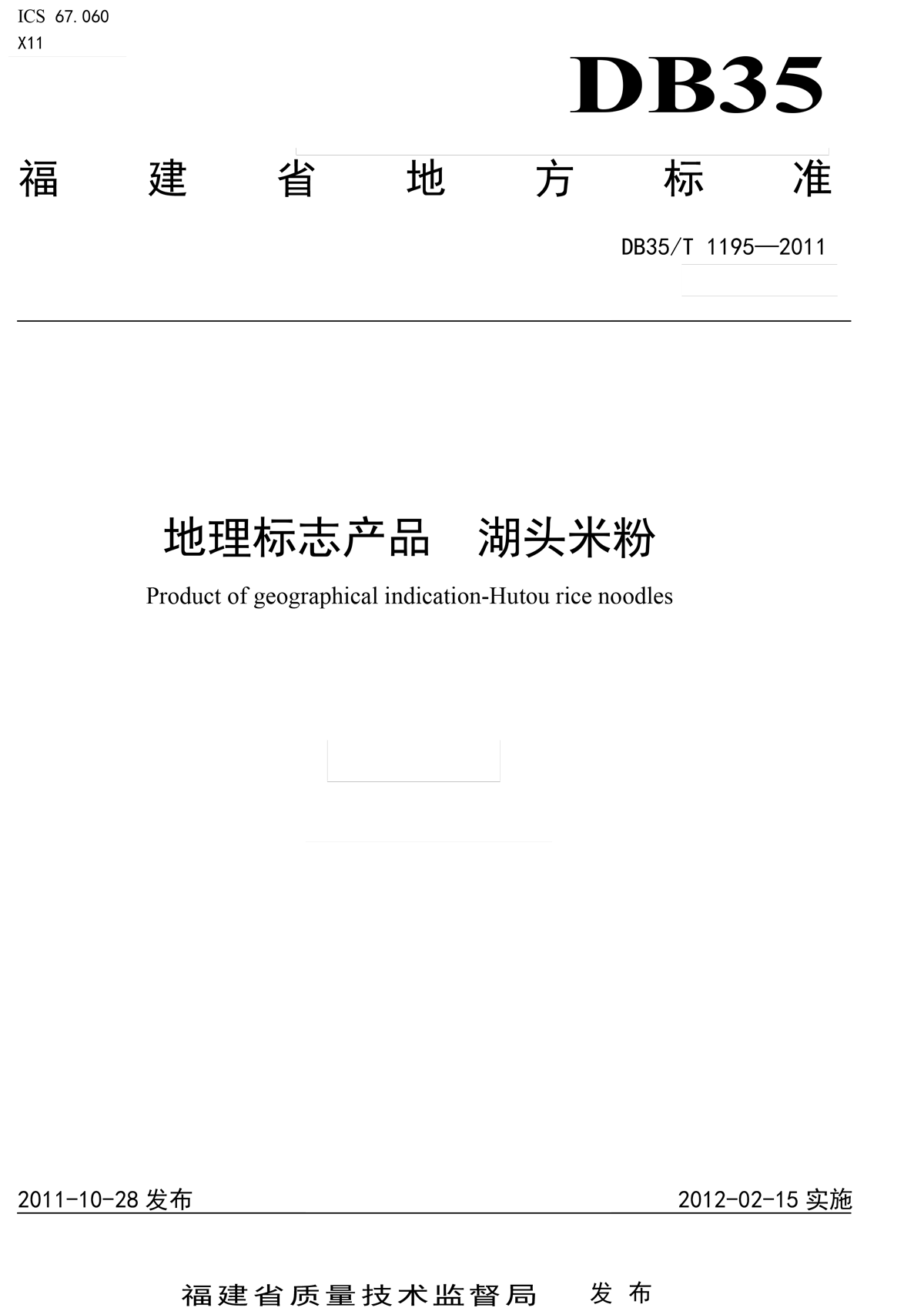 湖头米粉检测标准《DB35T 1195-2011 地理标志产品 湖头米粉》颁布