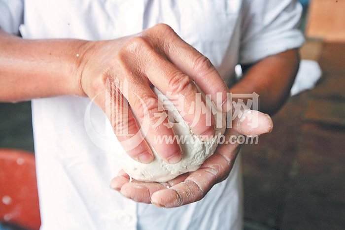 “我们比外地米粉多了压干,水煮,以及搅拌、碾压这3道程序。”当地村民介绍说。压干就是将磨好的米浆装入特制的细孔棉布袋,把袋口绑紧,用重物压在布袋上,使米浆中的水分排出,变成块状。这个步骤是比较关键的,因为米粉做出来Q不Q,就在于这个环节。
