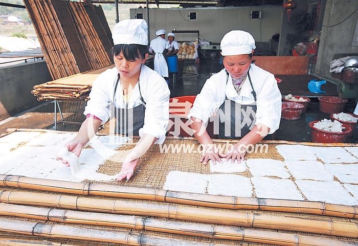 记者了解到,目前,安溪湖头镇共有米粉加工户2000多户,从业人员1万多人,行业产值3亿多元。湖头米粉作坊星罗棋布,仅福寿、汤头两村就有80%农户以制作米粉为生。