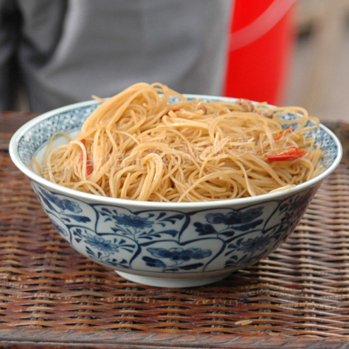 又称莆田米粉,白如雪,细如丝,略有米香味,干脆可贮藏。兴化米粉的特点,条细而匀,色泽洁白,轻松晶莹,煮炒易熟,汤干均可,饮食便利,独具一种风味。